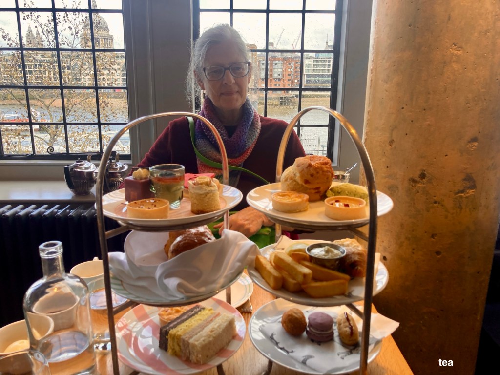 Weather is atrocious; rainy, cold, windy. LJP and I went to The Globe Theater, where we went on a tour of the facility and then went next door to The Swan and had tea. Afterwards we went to Leicester Square again to get tickets for tonight, The Mousetrap
